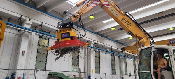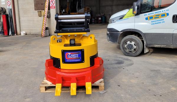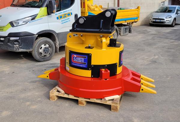 Magnete idraulico da 2,8 Ton per nostri escavatori da 20 a 42 Ton adibito alla raccolta materiali ferrosi di risulta dalle demolizioni sia in acciaio che cemento armato per dare una buona pulizia dell'area a fine cantiere