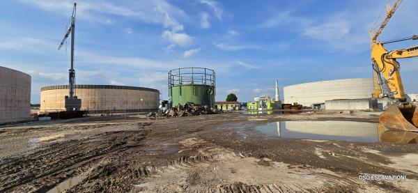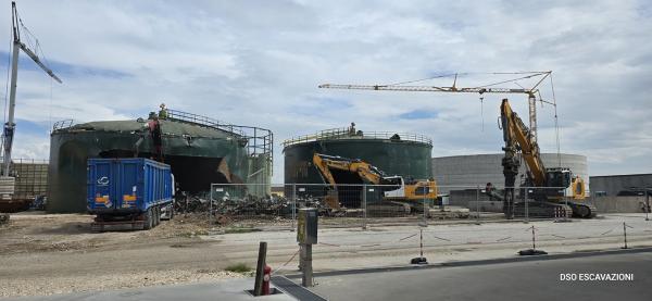 La DSO ESCAVAZIONI e stata impegnata con le proprie atrezzature per demolire 3 serbatoi in acciaio per il rinnovo di un impianto di biomasse a Ronco All'Adige VR. Demolizione completa di tutti gli impianti tubazioni e macchinari.