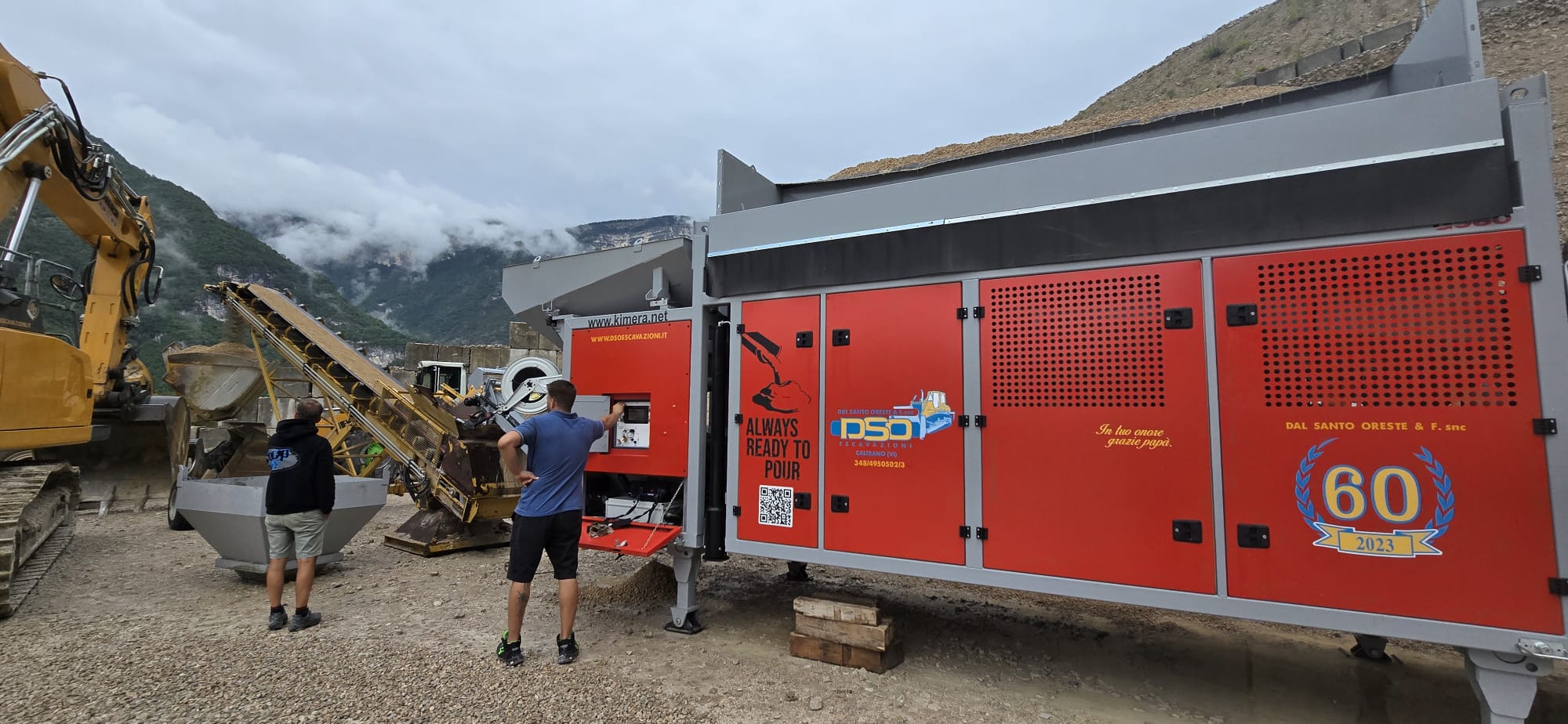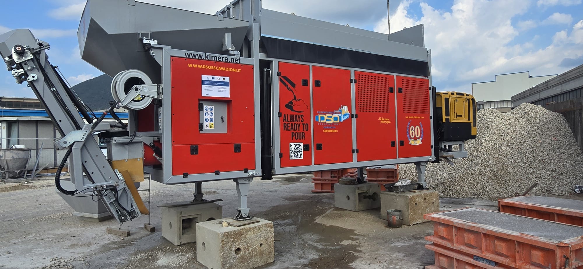 impianto semimobile munito di pese con celle di carico di tutti gli inerti e liquidi per la miscelazione certificata tramite computer di bordo.
