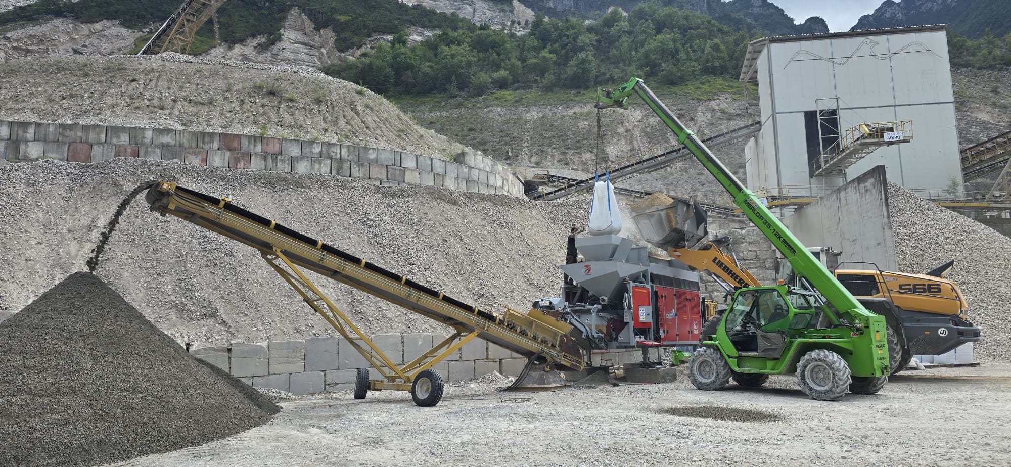 Nuovo impianto mobile per la miscelazione inerti tra cemento, calce, acqua e aditivi vari per la realizzazione di conglomerati tipo, stabilizzato cementato anche con riciclato. calcestruzzo, calcestruzzo con inerti riciclati, asfalto a freddo con fresato, terre rinforzate con capacità produttiva di 90mc ora.